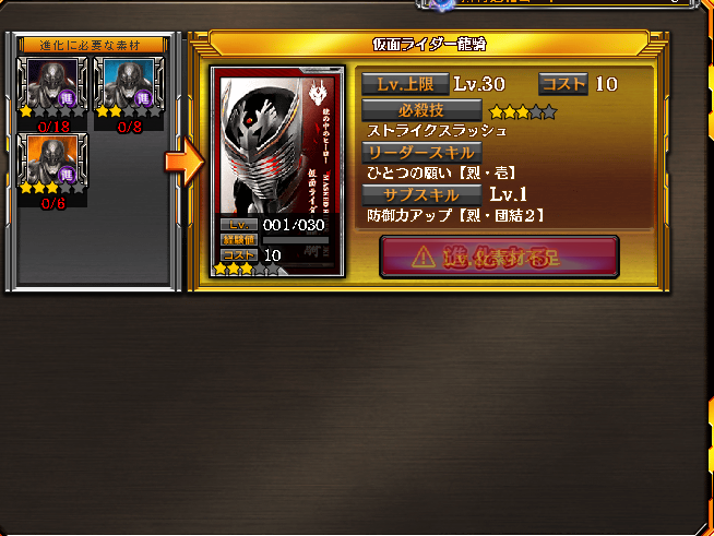 A:お待ちください坊ちゃま。進化素材で大量の枠を使うことになりますので、手持ちのライダーと相談し枠を買うこともまたノブリス・オブリージュですぞ。
