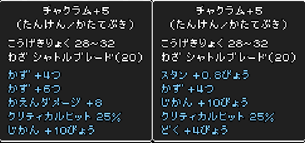 かず+6とはんい+4でノックバックとHP吸収が付いたリングダガーとか